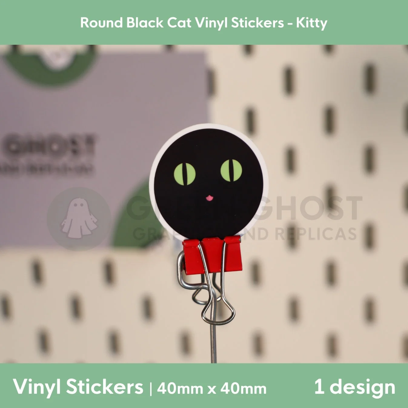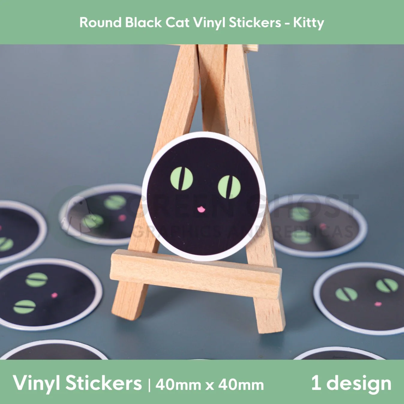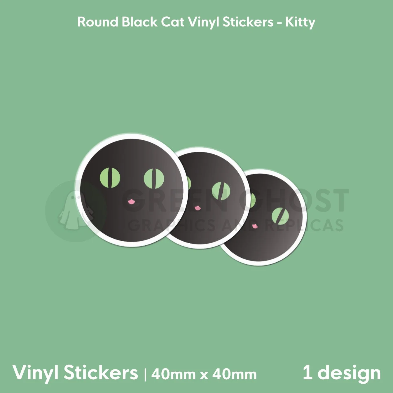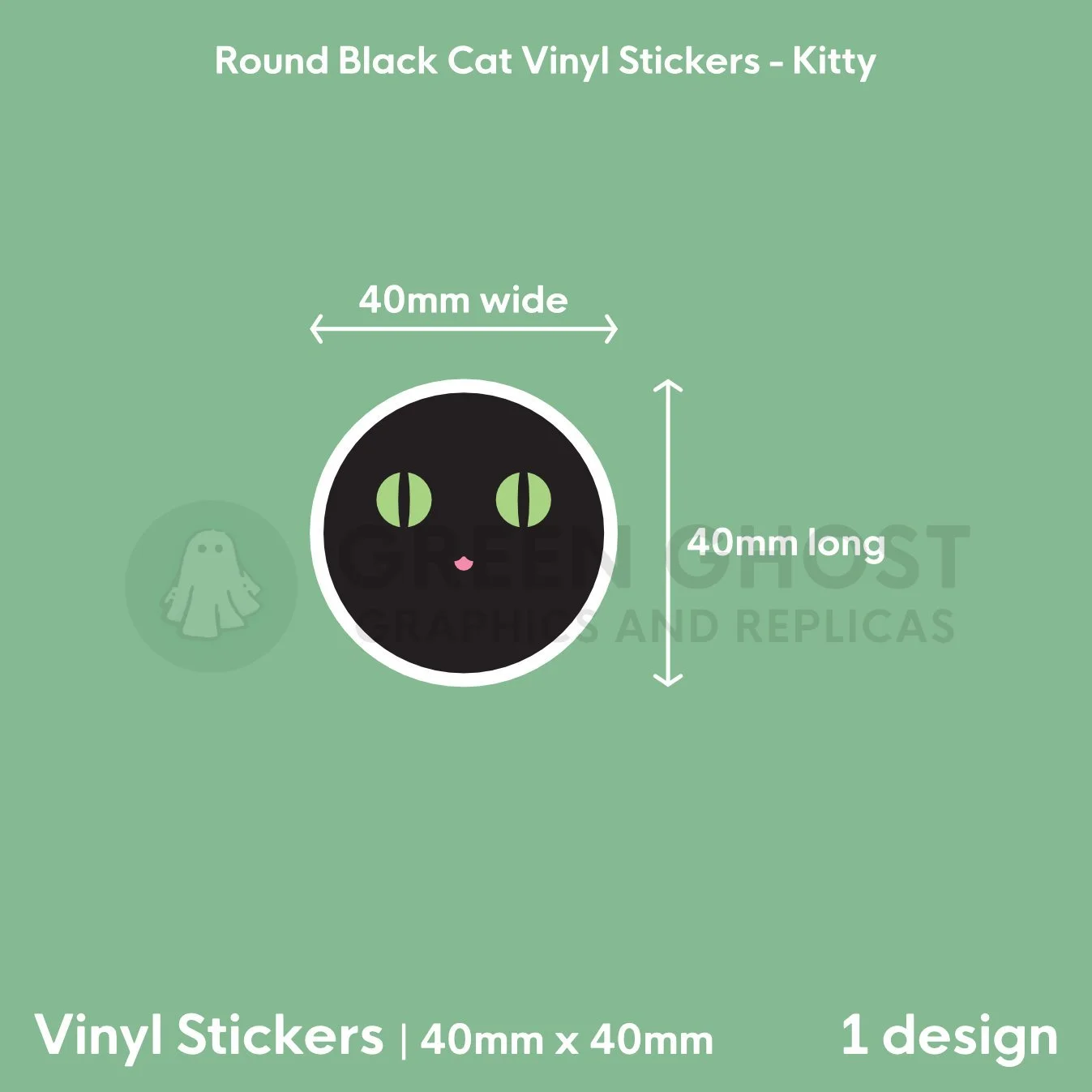 Round Black Cat Vinyl Sticker | 40mm x 40mm