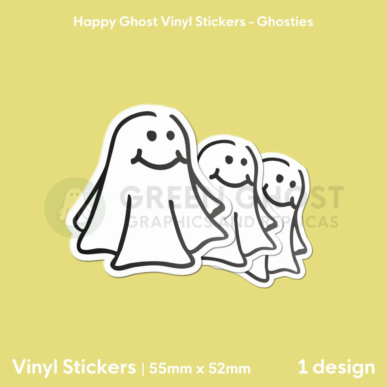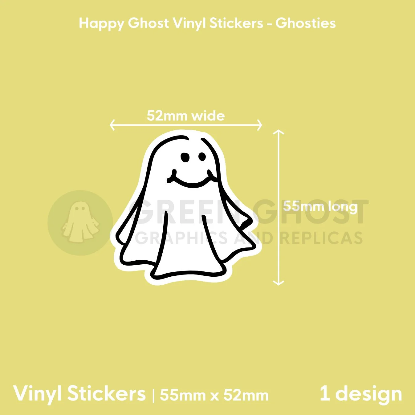 Ghostie: Happy Ghost Vinyl Sticker | 55mm x 52mm